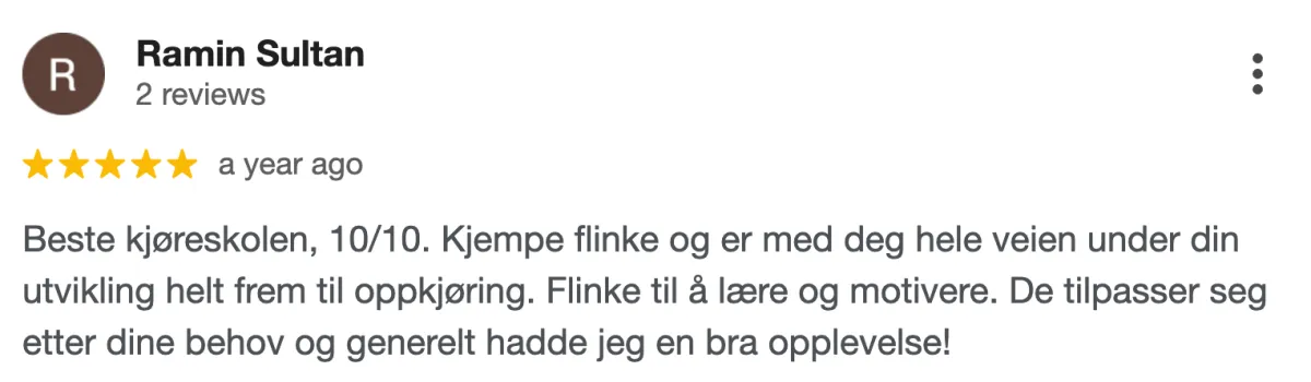 Vi vet at hverdagen kan være hektisk, og derfor er vi fleksible på tidspunkt for kjøretimer. Hos oss kan du tilpasse undervisningen etter din timeplan, så du slipper å stresse.